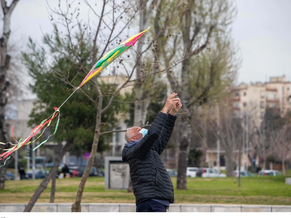 Ελλείψει εκδηλώσεων από τους κατά τόπους δήμους λόγω πανδημίας, οι Θεσσαλονικείς αρκέστηκαν στο να μεταβούν σε ανοιχτούς χώρους για το πέταγμα αετού, σύμφωνα με το voria.gr.