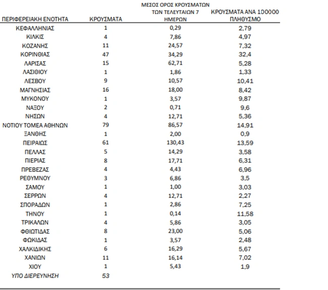 Ταυτόχρονα με την ανακοίνωση για το πόσα νέα κρούσματα «γέννησε» ο κορονοϊός τις τελευταίες 24 ώρες στην χώρα μας, ο ΕΟΔΥ ενημερώνει και για τον χάρτη της διασποράς.