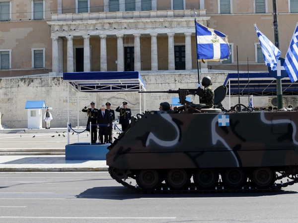 Δοκιμαστική πρόβα για τις μηχανοκίνητες μονάδες που θα λάβουν μέρος στη στρατιωτική παρέλαση της 25ης Μαρτίου, στην Αθήνα.