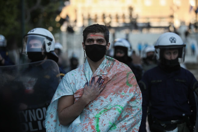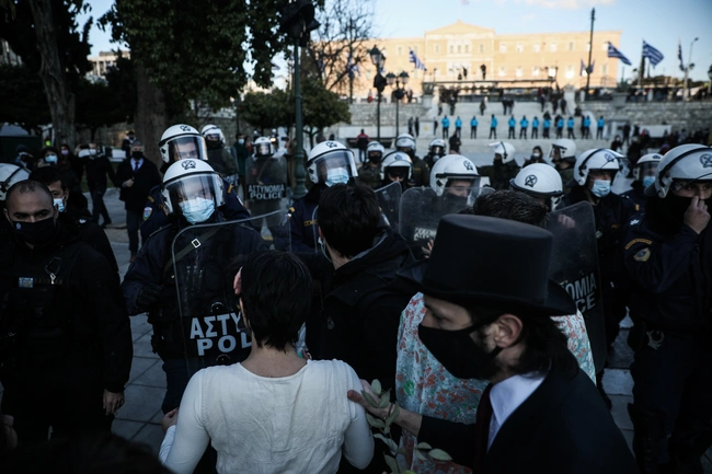 Έντεκα ημέρες μετά την μεγάλη πορεία των καλλιτεχνών στο κέντρο της Αθήνας οι καλλιτέχνες συγκεντρώθηκαν ξανά στο Σύνταγμα για να διαμαρτυρηθούν για τα τεκταινόμενα εν μέσω πανδημίας.