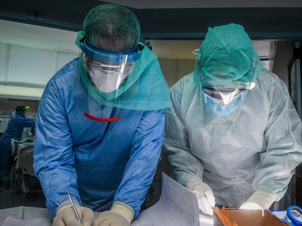 Ενδεικτική της δραματικής κατάστασης που επικρατεί στα νοσοκομεία της Αττικής, λόγω της μεγάλης διασποράς του κορονοϊού, είναι η εικόνα από το νοσοκομείο «Σωτηρία».