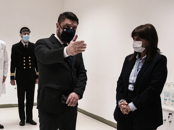 Την Πρόεδρο της Δημοκρατίας υποδέχτηκαν ο υφυπουργός Πολιτικής Προστασίας και Διαχείρισης Κρίσεων Νίκος Χαρδαλιάς καθώς και ο Αρχηγός ΓΕΕΘΑ Στρατηγός Κωνσταντίνος Φλώρος, ο Γενικός Γραμματέας Πρωτοβάθμιας Φροντίδας Υγείας Μάριος Θεμιστοκλέους και ο Δήμαρχος Ελληνικού Αργυρούπολης Γιάννης Κωνσταντάτος.