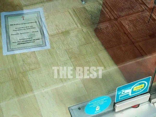 Σε ένδειξη διαμαρτυρίας οι καταστηματάρχες κρέμασαν κηδειόχαρτα έξω από τους χώρους, εξαιτίας της απόφασης της κυβέρνησης να μην τους επιτρέψει να ανοίξουν και αυτοί κανονικά όπως και στις άλλες περιοχές της Ελλάδας.