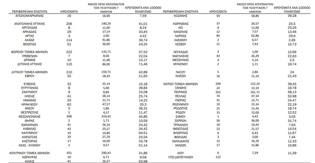 Αναλυτικά, η γεωγραφική κατανομή των σημερινών κρουσμάτων έχει ως εξής: