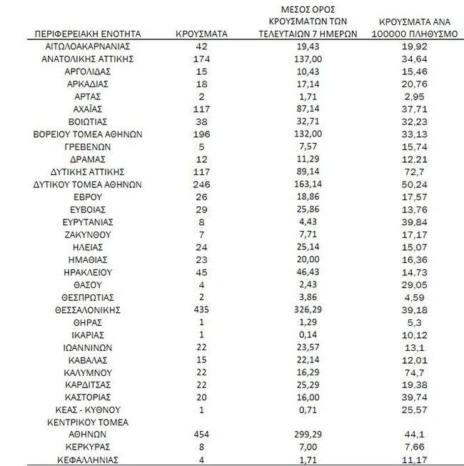 Δείτε αναλυτικά πώς κατανέμονται τα κρούσματα γεωγραφικά σύμφωνα με όσα ανακοίνωσε σήμερα ο ΕΟΔΥ: