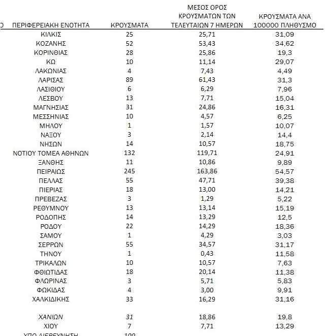 - 31 κρούσματα στην Π.Ε. Χανίων
