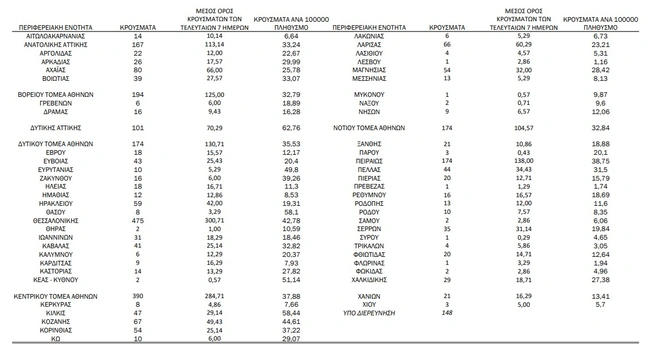 - 167 κρούσματα στην ΠΕ Ανατολικής Αττικής