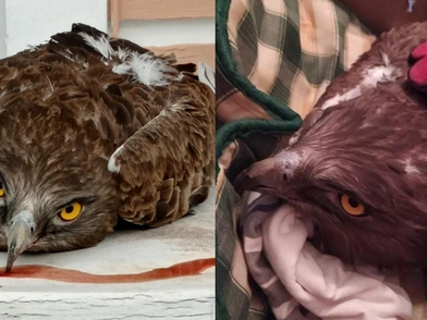 Το αρπακτικό παρέλαβε ο διασώστης για να παραμείνει σε ζεστό περιβάλλον και χάρη στις οδηγίες από το σύλλογο ΑΝΙΜΑ η αιμορραγία από το στόμα σταμάτησε.