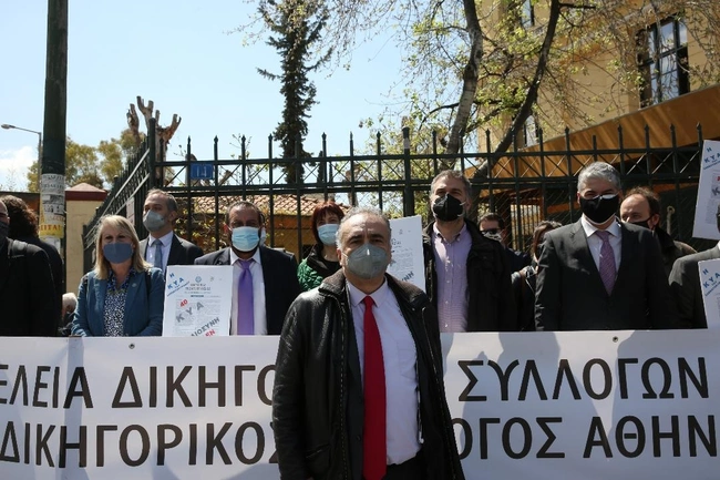 Στην Αθήνα, η συγκέντρωση πραγματοποιήθηκε στην είσοδο του Πρωτοδικείου Αθηνών στην πρώην Σχολή Ευελπίδων. Σε δηλώσεις του στα μέσα ενημέρωσης, ο πρόεδρος της Ολομέλειας των προέδρων των Δικηγορικών Συλλόγων Ελλάδος και πρόεδρος του Δικηγορικού Συλλόγου Αθηνών, Δημήτρης Βερβεσός, ανάμεσα στα άλλα επισήμανε: «Οι δικηγόροι έχουν εξαντλήσει τα όρια των αντοχών τους. Η Δικαιοσύνη δεν έχει οξυγόνο για να αναπνεύσει. Τα δικονομικά δικαιώματα των Ελλήνων Πολιτών είναι σε "καραντίνα"