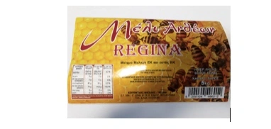 Μέλι από άνθη και εσπεριδοειδή με την εμπορική ονομασία «ΚΥΨΕΛΗ ΤΩΝ ΘΕΩΝ», της επιχείρησης REGINA, ΚΟΥΡΑΝΤΙΔΗΣ ΧΡ. ΝΙΚΟΛΑΟΣ, σε συσκευασίες των 20γρ, με ημερομηνία λήξης 5/2023.