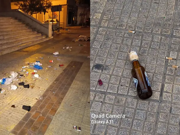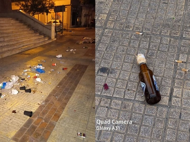 Τα συνεργεία καθαρισμού δουλεύουν ώστε να καθαρίσουν τόσο την πλατείας όσο και τους γύρω χώρους έπειτα από το νέο κορονοπάρτι με 100άδες νεαρούς.