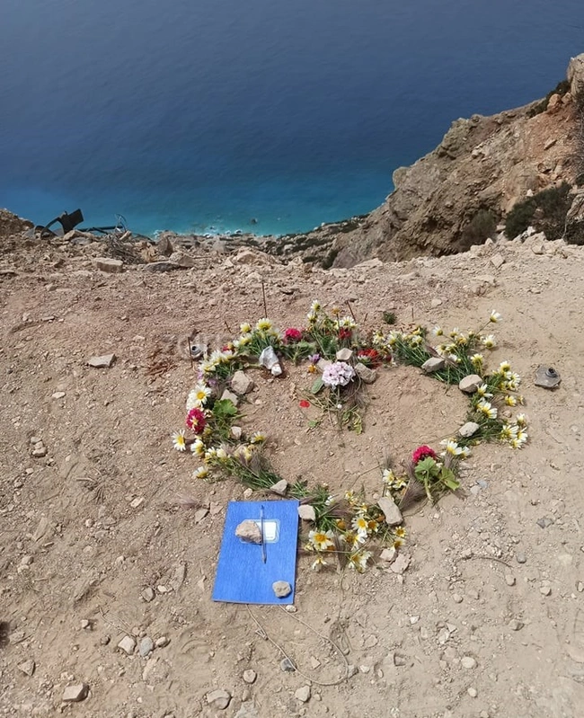 Εχτές Κυριακή οι φίλοι της κοπέλας μαζεύτηκαν στη Γαύδο, στο σημείο που το αυτοκίνητό στο οποίο επέβαινε έπεσε στο γκρεμό και άφησαν ένα στεφάνι από λουλούδια σε σχήμα καρδιάς.