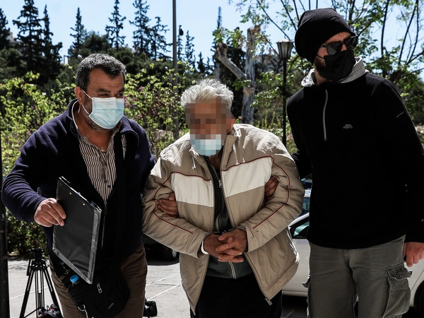 Ο κατηγορούμενος υποβασταζόμενος από τους αστυνομικούς οδηγήθηκε στη συνέχεια στον ανακριτή.