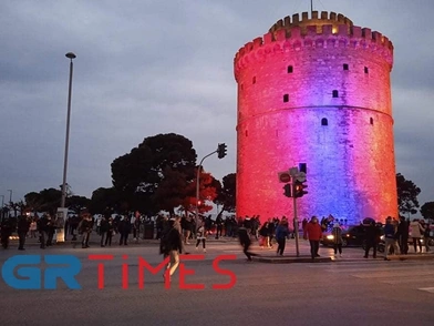 Περίπου 100 άτομα, ενήλικες αλλά και μικρά παιδιά, ανεμίζοντας τις σημαίες της Ελλάδας και της Αρμενίας, αποδίδουν φόρο τιμής στην ημέρα της Γενοκτονίας των Αρμενίων, υπό το φως του φωταγωγημένου μνημείου του Λευκού Πύργου στην Θεσσαλονίκη.