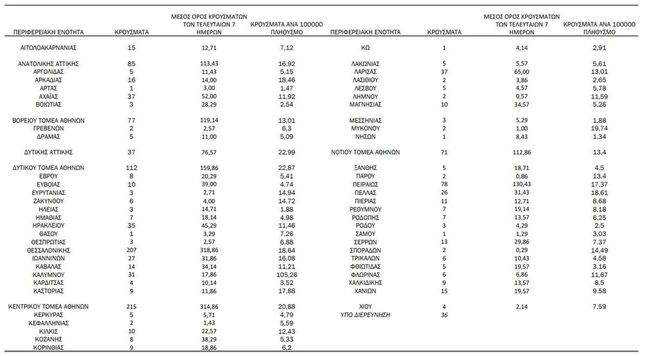 Τα κρούσματα ανά Περιφερειακή Ενότητα
