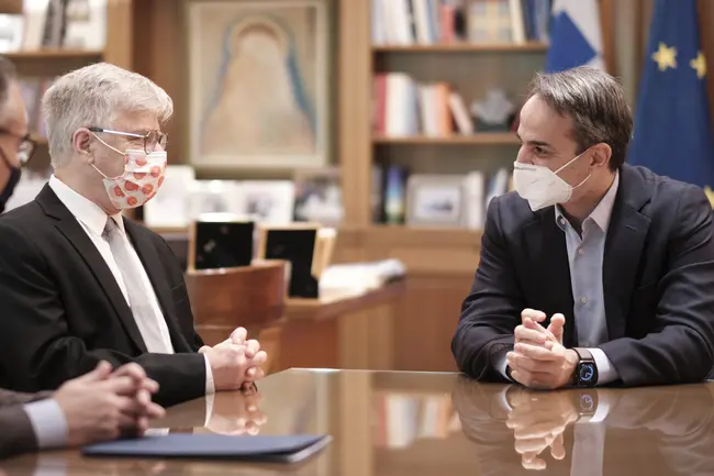 Τις εξελίξεις για τη νέα θεραπεία για τον κορονοϊό, το φάρμακο που αναπτύσσεται στο Τελ Αβίβ και την έναρξη των κλινικών δοκιμών στην Ελλάδα, συζήτησαν ο Κυριάκος Μητσοτάκης με τον Ισραηλινό Καθηγητή Ιατρικής Ναντίρ Αρμπέρ, παρουσία του Καθηγητή Σωτήρη Τσιόδρα και του αναπληρωτή Υπουργού Υγείας Βασίλη Κοντοζαμάνη.