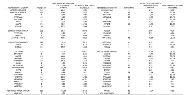 Αναλυτικά, η γεωγραφική κατανομή των σημερινών κρουσμάτων έχει ως εξής: