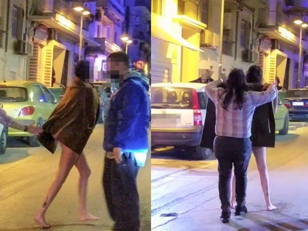 Σύμφωνα με το thes.gr, η γυναίκα περπατούσε στη μέση του δρόμου χωρίς τα ρούχα της προς έκπληξη όλων.