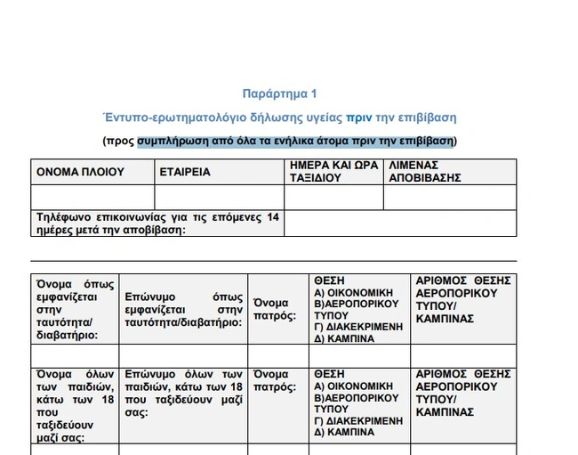 Δείτε εδώ ολόκληρη τη Δήλωση Υγείας Επιβατών.