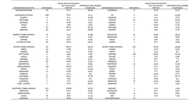 Η κατανομή των κρουσμάτων στην Αττική σήμερα είναι εξής: