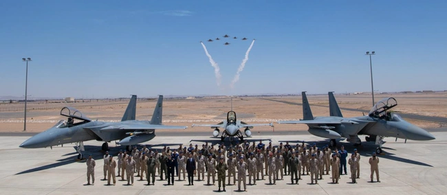 Εντυπωσιακές είναι οι εικόνες από την αεροπορική επίδειξη με χαμηλές διελεύσεις μικτού σχηματισμού μαχητικών αεροσκαφών F-16 της Ελληνικής Πολεμικής Αεροπορίας και F-15 της Βασιλικής Αεροπορίας της Σαουδικής Αραβίας, παρουσία του Αρχηγού ΓΕΕΘΑ στρατηγού Κωνσταντίνου Φλώρου.