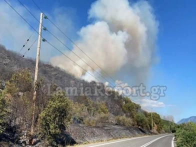 Όπως αναφέρει το lamiareport.gr, ένα τρακτέρ το οποίο κουβαλούσε μπάλες προκειμένου να σιτιστούν ζώα, άρπαξε φωτιά, με συνέπεια οι φλεγόμενες μπάλες να πέσουν στο οδόστρωμα πριν το αντιληφθεί ο οδηγός και λόγω των έντονων ανέμων να αρπάξουν φωτιά τα πρανή, ακόμη και κολόνες της ΔΕΗ. Μετά από ένα διάστημα τριών ωρών, τα περισσότερα από τα διάσπαρτα μέτωπα της φωτιάς σε μία απόσταση 10 χιλιομέτρων, έχουν περιοριστεί αισθητά από τους πυροσβέστες και τα εναέρια μέσα, και μένει πλέον μία συνολικότερη εκκαθάριση για μικρότερες εστίες.
