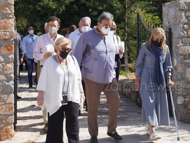 Με τη βοήθεια ενός μπαστουνιού περπατούσε η Μαρέβα Μητσοτάκη, που εμφανίστηκε σήμερα, Σάββατο, στο μνημόσυνο για τα τέσσερα χρόνια από τον θάνατο του Κωνσταντίνου Μητσοτάκη στα Χανιά.
