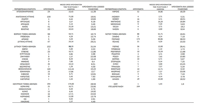 Αναλυτικά η κατανομή των κρουσμάτων στην Αττική: