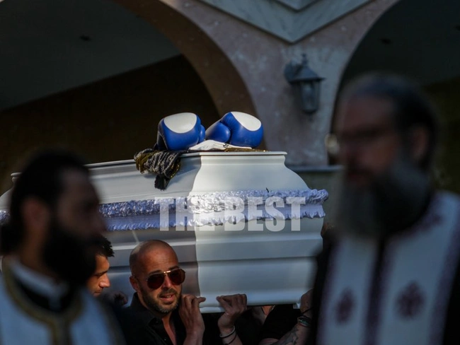 Στον Άγιο Νικόλαο στη Μιτόπολη τελέστηκε η εξόδιος ακολουθία, ενώ η οικογένεια του Τάσου Μπερδέση είχε τοποθετήσει πάνω σε άσπρο φέρετρο τη στολή και τα πυγμαχικά του γάντια. Η μητέρα του 39χρονου και τα δύο του αδέλφια, η σύντροφος του Τάσου Μπερδέση, συγγενείς και φίλοι αποχαιρέτησαν τον δικό τους άνθρωπο, με το κλίμα να είναι ιδιαίτερα βαρύ. Συντετριμμένος ο φίλος και δικηγόρος του Τάσου Μπερδέση, Σάκης Κεχαγιόγλου, ο οποίος ήταν από τους πρώτους που έφτασαν στον ναό του Αγίου Νικολάου. «Αγάπη μου, Αρχοντά μου. Αφήστε με να δω το παιδί μου», έλεγε η μητέρα του Τάσου Μπερδέση, σύμφωνα με το thebest.gr.