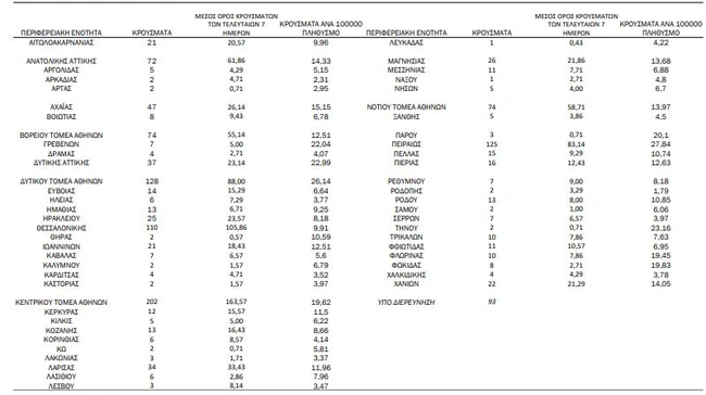 Οι περιφερειακές ενότητες με διψήφιο αριθμό κρουσμάτων
