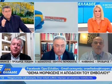 «Οσο μεγαλύτερο είναι το επίπεδο μόρφωσης, τόσο ισχυρότερη είναι η αποδοχή του εμβολίου» είπε ο κ. Βασιλακόπουλος, με τον κ. Γιαννάκο να μιλά από την πλευρά του για στοχοποίηση των νοσηλευτών την ώρα που κοντά σε ένα ποσοστό «80% έχει εμβολιαστεί, ένα 10% έχει νοσήσει κι έχει δημιουργήσει αντισώματα και οι υπόλοιποι δεν έχουν εμβολιαστεί για κάποιον λόγο που δεν τους επιτρέπει να το πράξουν ακόμη».
