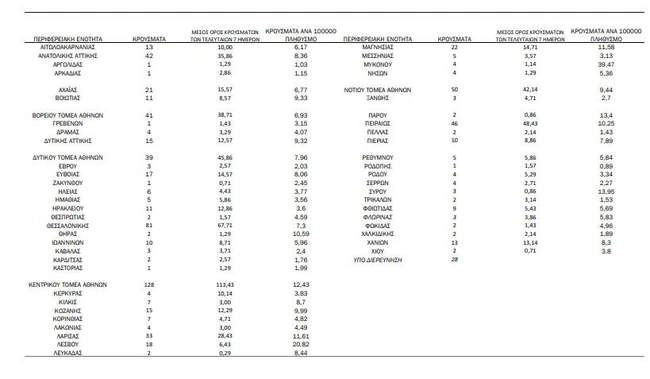 Αναλυτικά η γεωγραφική κατανομή των κρουσμάτων