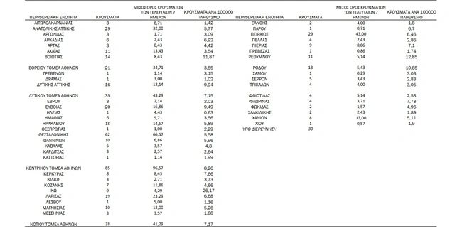 Aναλυτικότερα τα κρούσματα στις περιφερειακές ενότητες που ανήκουν στην Αττική: