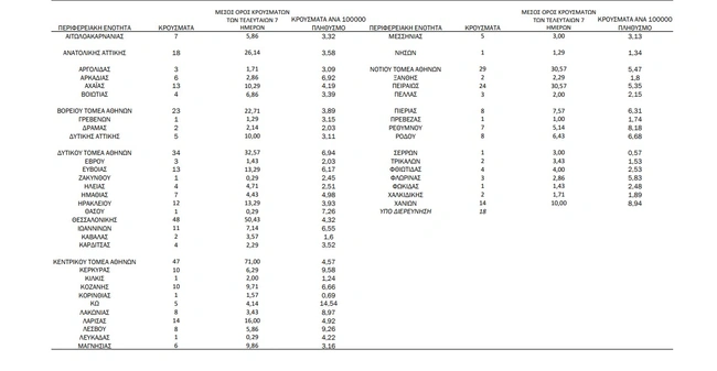 Αναλυτικά τα κρούσματα στιην Αττική: