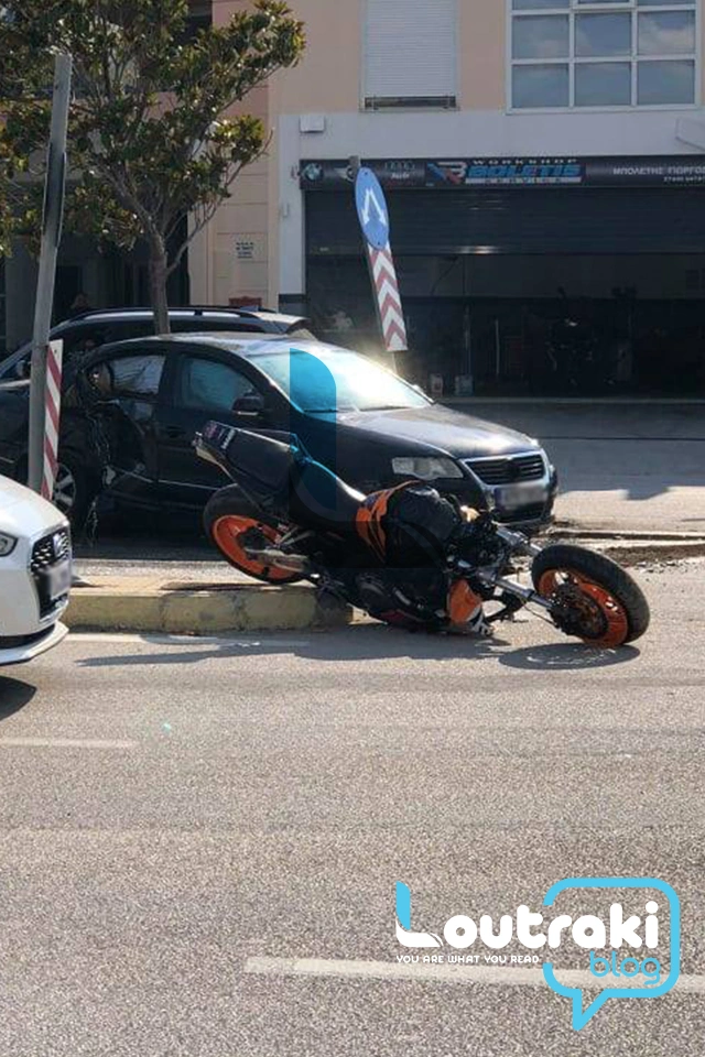 Ο 19χρονος νεαρός μοτοσικλετιστής καρφώθηκε σε ΙΧ όχημα, όταν σύμφωνα με πληροφορίες του loutrakiblog.gr είχε αναπτύξει ταχύτητα, ενώ το ΙΧ όχημα προσπάθησε να εισέλθει στη λεωφόρο από παράδρομο.