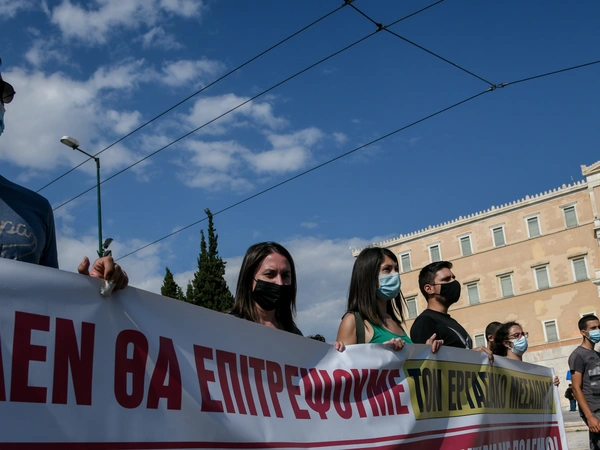 Στο μεταξύ, νωρίτερα μέσα στην ημέρα ολοκληρώθηκε, ύστερα από σύντομη παράσταση διαμαρτυρίας μπροστά στη Βουλή, η πορεία της ΓΣΕΕ και της ΑΔΕΔΥ με τη συμμετοχή πλήθους συνδικαλιστικών οργανώσεων, όπως η Διδασκαλική Ομοσπονδία Ελλάδας, οι εργαζόμενοι στο υπουργείο Οικονομικών, σύλλογοι εργαζομένων σε νοσοκομεία, στον χώρο του πολιτισμού, κ.ά, αλλά και φοιτητικοί σύλλογοι και αριστερές συλλογικότητες. Οι συγκεντρωμένοι φώναξαν συνθήματα κατά της κυβέρνησης και του νομοσχεδίου Χατζηδάκη για τα εργασιακά, ζητώντας την απόσυρσή του.