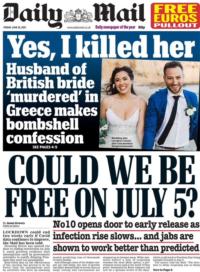 Η ομολογία του 32χρονου πιλότου για τη δολοφονία της Καρολάιν στα Γλυκά Νερά αποτελεί ένα από τα βασικά θέματα στις πρώτες σελίδες των βρετανικών Μέσων, που από την πρώτη ημέρα είχαν καλύψει το γεγονός.