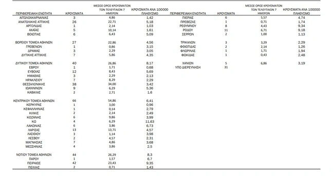 Tα κρούσματα στις περιφερειακές ενότητες που ανήκουν στην Αττική: