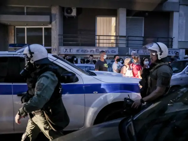 Στο σημείο βρίσκονται συγκεντρωμένα περίπου 40-50 άτομα, φωνάζοντας συνθήματα και καλώντας τον φερόμενο ως δράστη να βγει έξω από την πολυκατοικία.