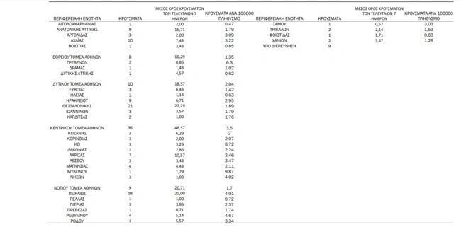 Αναλυτικά η κατανομή των κρουσμάτων κoρονοϊού