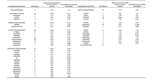 Οι περιφερειακές ενότητες με διψήφιο αριθμό κρουσμάτων
