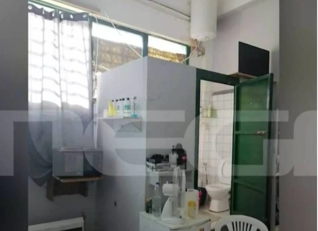 Σύμφωνα με τις φωτογραφίες που παρουσίασε το MEGA, ο 32χρονος βρίσκεται σε κελί στη VIP πτέρυγα των φυλακών, στο οποίο ο κρατείται μαζί με άλλα τρία άτομα, όπως είχε γράψει και το reader.gr.