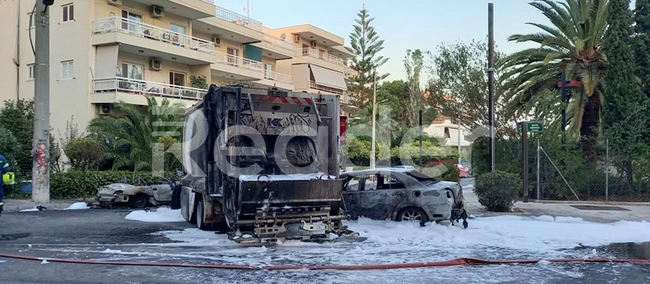 Από το θερμικό φορτίο που αναπτύχθηκε προκλήθηκαν σοβαρότατες υλικές ζημιές και σε δύο σταθμευμένα ΙΧ αυτοκίνητα. Στο σημείο έφτασε ισχυρή δύναμη της πυροσβεστικής και της πολιτικής προστασίας καταφέρνοντας να σβήσουν τη φωτιά πριν επεκταθεί και σε άλλα σταθμευμένα αυτοκίνητα.