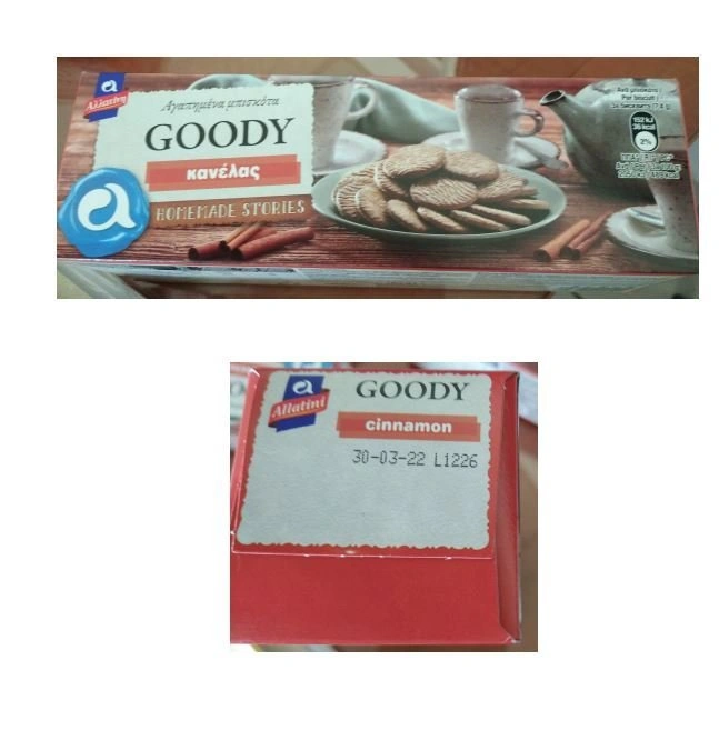 Ο ΕΦΕΤ και ειδικότερα η Περιφερειακή Διεύθυνση Δυτικής Ελλάδας, κατά τη διενέργεια ελέγχων στο πλαίσιο του Προγράμματος «Επίσημος Έλεγχος για την Παρακολούθηση των Επιπέδων Προσθέτων Τροφίμων και Αρωματικών Ουσιών σε Τρόφιμα» έτους 2021, προέβη σε δειγματοληψία τροφίμου με τα στοιχεία: «Αγαπημένα μπισκότα GOODY Κανέλας Αλλατίνη» 185 gr (Ημ/νια Λήξεως: 30/03/2022, Αρ. Παρτίδας L 1226), που παράγεται από την εταιρεία «ELBISCO A.E.».