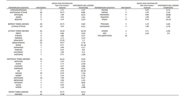 Η κατανομή των νέων κρουσμάτων
