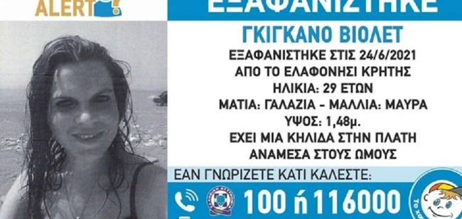 «Εξαφανίστηκε την Πέμπτη 24 Ιουνίου από το Ελαφονήσι της Κρήτης, η Βιολέτ Γκιγκανό, 29 ετών.