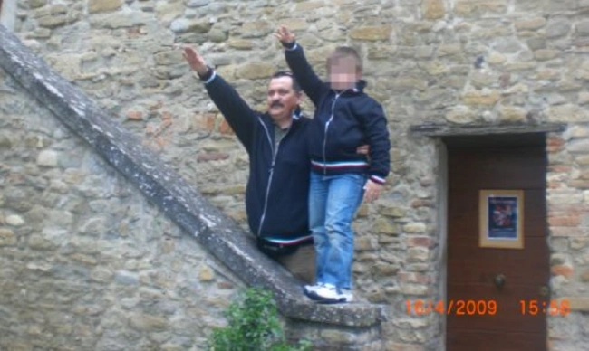 Σε άλλο φωτογραφικό υλικό παρουσιάζεται με την οικογένειά του να χαιρετάει ναζιστικά, να μαθαίνει στα παιδιά του να χαιρετούν ναζιστικά, ενώ ευχετήριες κάρτες του ίδιου και της συζύγου του φέρουν τη σβάστικα και χρονολογία σύμφωνα με ημερολόγιο που ξεκινά από το έτος γέννησης του Χίτλερ. Ακόμα, εντοπίστηκαν δύο γερμανικά κράνη, ένα με το σήμα των Ες-Ες και ένα με τη σβάστικα, σημαίες μικρού και μεγάλου μεγέθους με τον αγκυλωτό σταυρό, κάδρο με τη φωτογραφία του Αδόλφου Χίτλερ με την επιγραφή «Χρυσή Αυγή» πάνω από τη φωτογραφία, πινακίδα με την επιγραφή «Adolf Hitler Strasse» (Οδός Αδόλφου Χίτλερ), και μία φωτογραφία στην οποία απεικονίζεται ο Μπενίτο Μουσολίνι να χαιρετά φασιστικά.