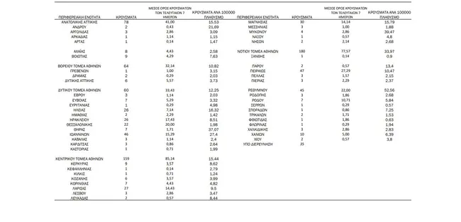 Αναλυτικά, η κατανομή των κρουσμάτων κορονοϊού σε όλη τη χώρα