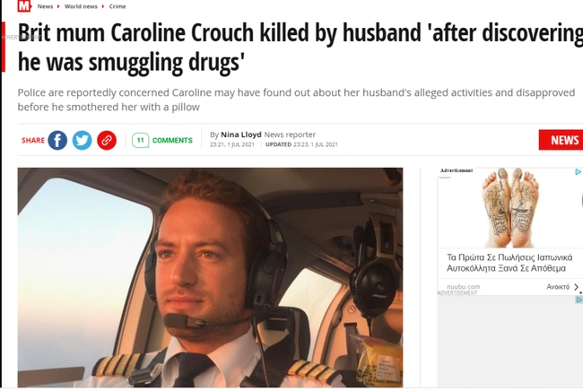 Σύμφωνα με το δημοσίευμα, η Αστυνομία εξετάζει αν η Καρολάιν μπορεί να είχε μάθει για παράνομες δραστηριότητες του συζύγου της και να μην το ενέκρινε και αυτός τελικά να ήταν ο λόγος που την σκότωσε. Επιπλέον, άλλη πηγή, αποκάλυψε στη βρετανική εφημερίδα Sun, ότι ο πιλότος είχε όλο και περισσότερο έλεγχο πάνω στη σύζυγό του και μάλιστα τοποθέτησε μια εφαρμογή παρακολούθησης στο τηλέφωνό της για να γνωρίζει ανά πάσα ώρα πού βρίσκεται.
