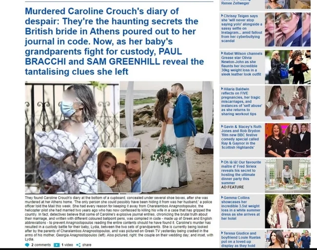 Στις 26/6 η Daily Mail προχώρησε στην συγκλονιστική αποκάλυψη του ημερολογίου της Καρολάιν Κράουτς, στο οποίο η νεαρή κοπέλα κατέγραφε όλες τις ζοφερές στιγμές που πέρασε δίπλα στον καθ' ομολογίαν δολοφόνο της. Επικαλούμενη ένα άγνωστο ημερολόγιο της νεκρής Καρολάιν, το οποίο, σύμφωνα με τους Βρετανούς ρεπόρτερ, βρέθηκε «θαμμένο» κάτω από στοίβες με κουτιά παπουτσιών στο σπίτι του ζευγαριού στα Γλυκά Νερά, η βρετανική εφημερίδα περιγράφει, με τα «μάτια» της Καρολάιν, σκηνές ενός γάμου, που φαινόταν από καιρό ότι δεν πήγαινε καλά, καθώς οι σχέσεις της 20χρονης με τον 32χρονο πιλότο φαίνεται πώς βρίσκονταν σε οριακό σημείο.